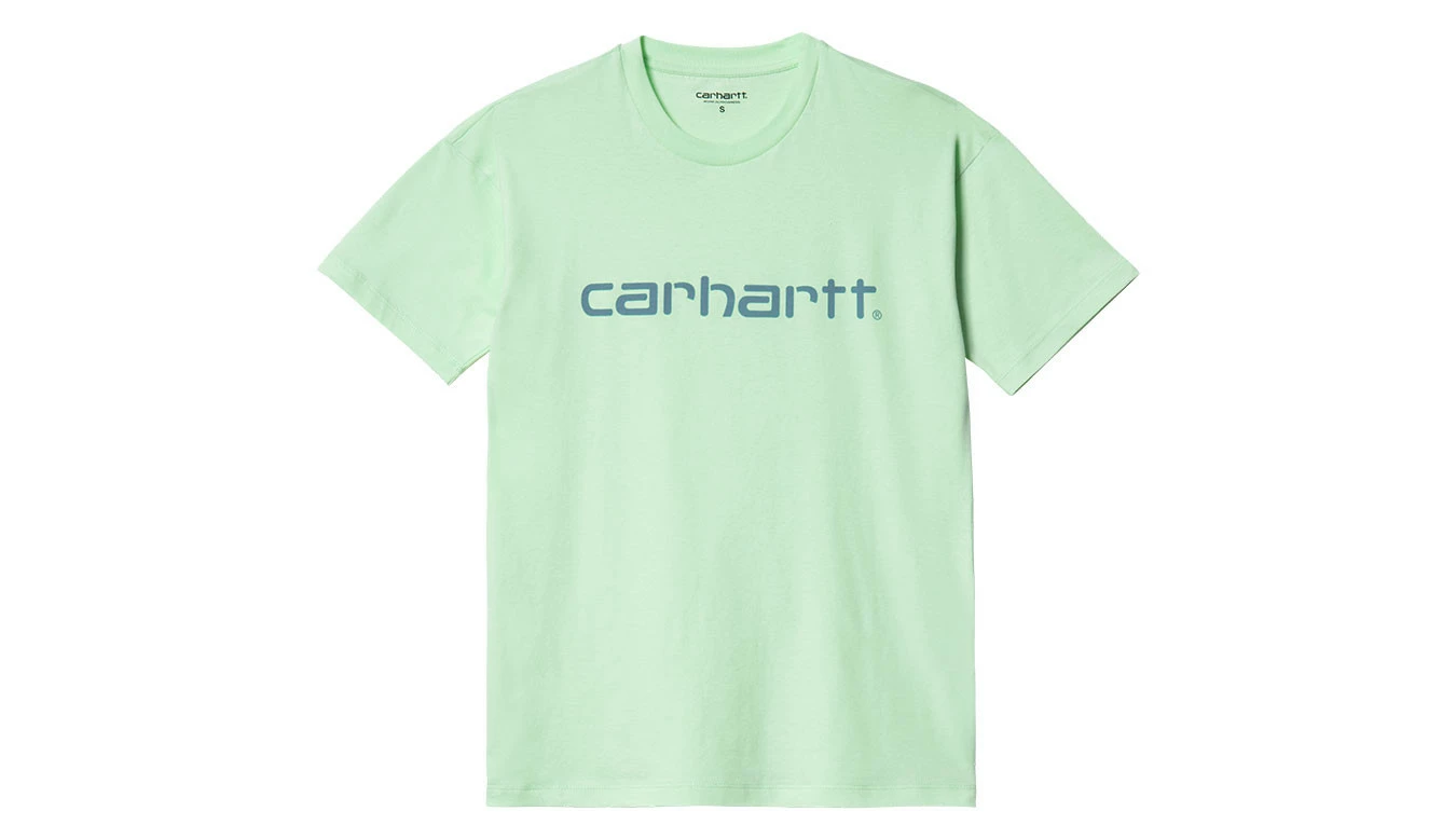 The Women’s S/S Script T-Shirt is constructed from organic cotton jersey and features a classic Carhartt Script Logo print on the front.