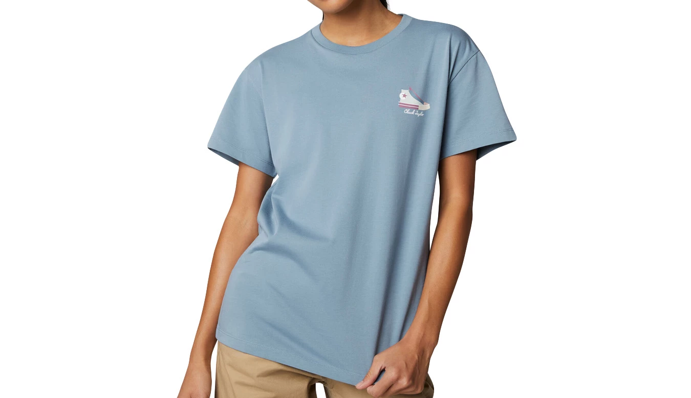 A Chuck Taylor All Star High Top gets comfortable on the left chest of this short sleeve, cotton jersey tee. In an easy, relaxed fit for everyday wear. You know what that means‚ iconic.