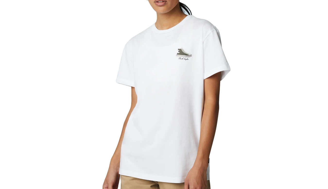 A Chuck Taylor All Star High Top gets comfortable on the left chest of this short sleeve, cotton jersey tee. In an easy, relaxed fit for everyday wear. You know what that means‚ iconic.