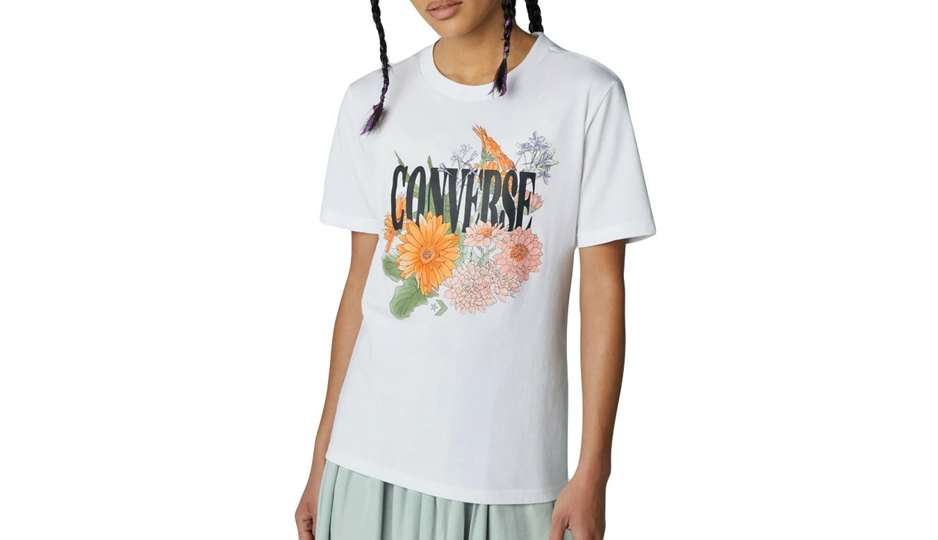 Inspired by desert florals, this classic fit cotton jersey tee blurs the line between style and comfort. It has that lightweight, favorite tee feel, plus oversized flowers blooming through an unmistakable Converse wordmark.