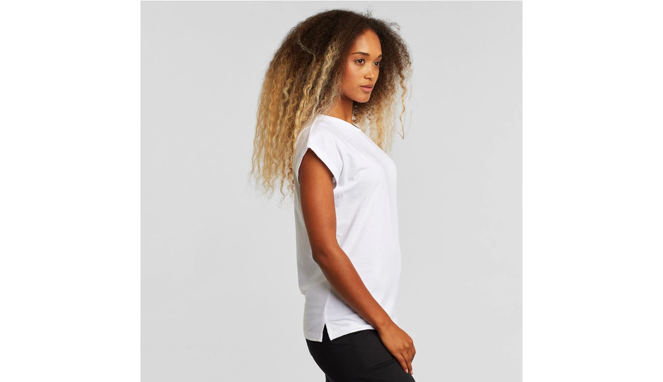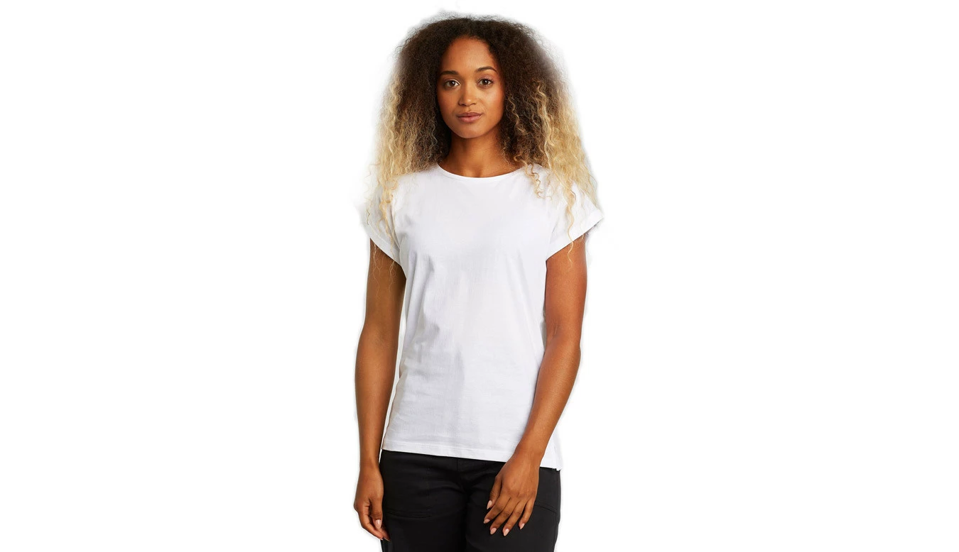 Women’s crew neck T-shirt with short, folded sleeves, made sustainably with care for people and planet.