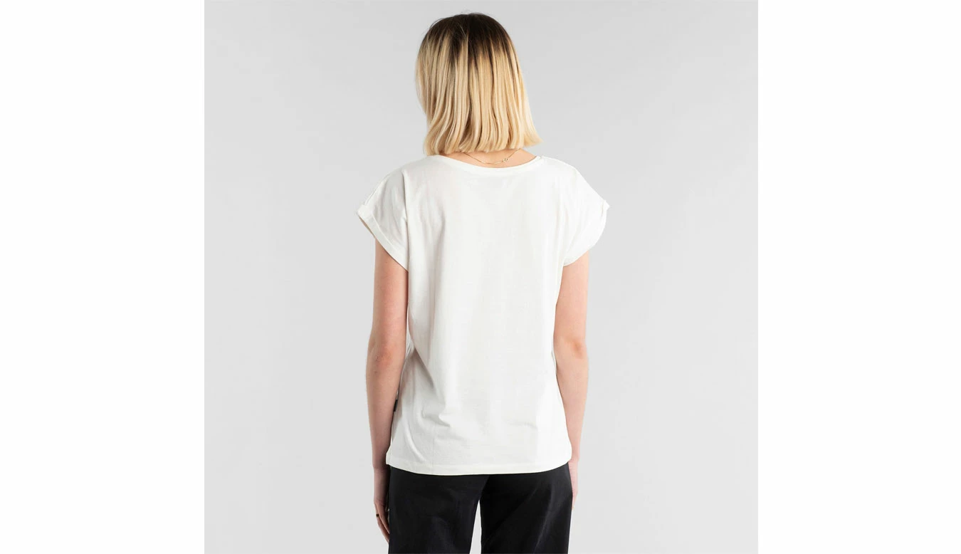 Women’s crew neck T-shirt with short, folded sleeves, made sustainably with care for people and planet.