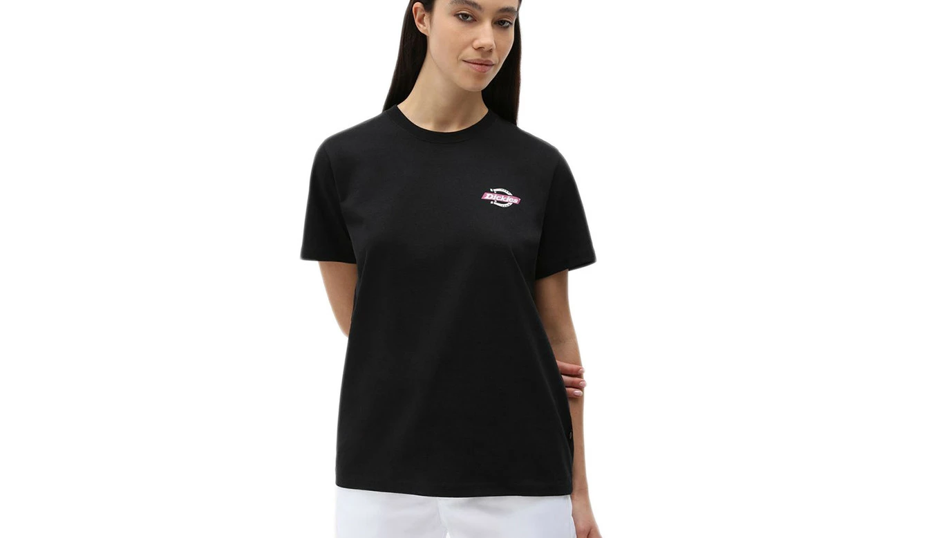The Ruston tee is a regular fit women’s crew neck t-shirt crafted from cool and comfy 100% cotton jersey. Featuring a small iconic vintage Dickies logo graphic on the front and a large logo on the back, our classic staple cotton t-shirt is made for everyday wear.