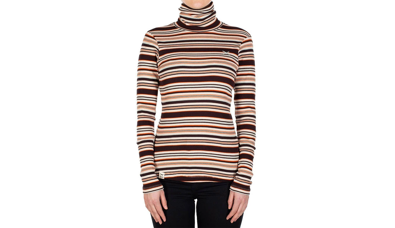 With the IRIEDAILY Boerke Mockneck you get a ribbed jersey longsleeve with turtleneck and stylish striped look. The vegan shirt comes in a slim fit and fits tight to the body. The small logo embroidery on the chest completes the style.