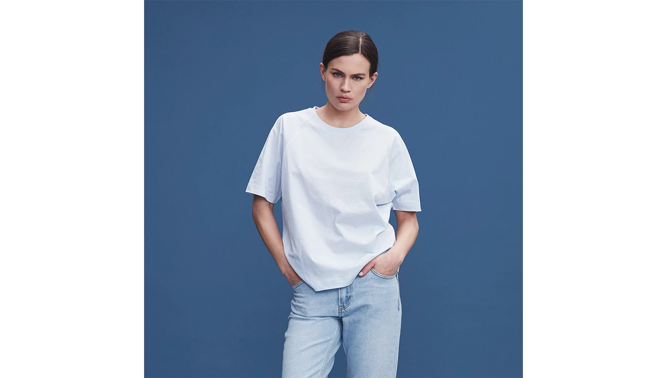 A relaxed light jersey t-shirt with a kimono style sleeve cut and straight hem.