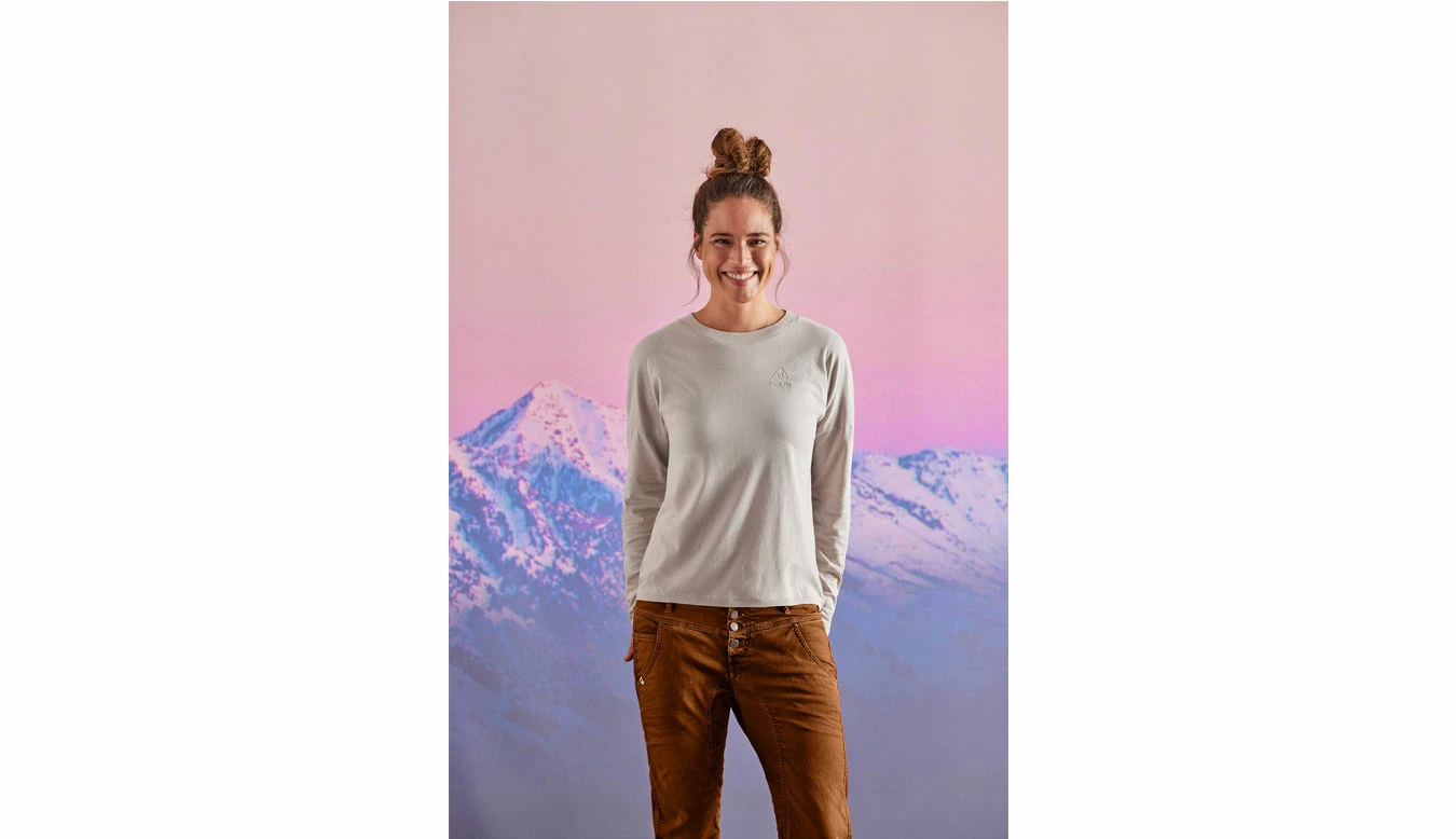 Organic cotton longsleeve with ribbed collar, sleeves and waistband with Happy Mountain embroidery on the chest. The special feature of this longsleeve is the BioTint dyeing: BioTint is an innovative and sustainable dyeing method that uses only organic waste in the form of roots, leaves and seed extracts for the dyeing process.