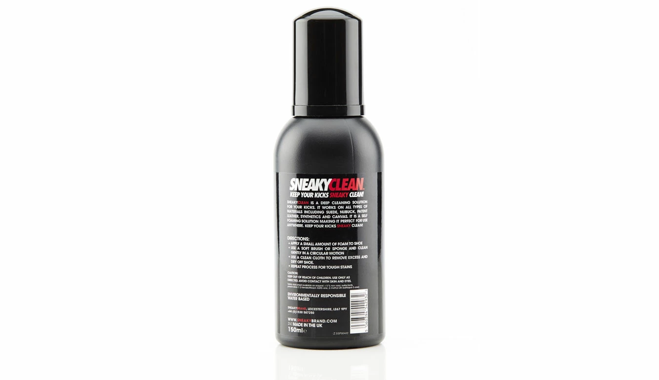 Sneaky shoe cleaner is a premium deep cleaning solution for your shoes, trainers and boots. The shoe cleaner has an unique applicator that creates a foam cleaning solution straight from the bottle. There is no need to get a bowel of water, Sneaky Clean has been designed to be used directly ion the shoe.