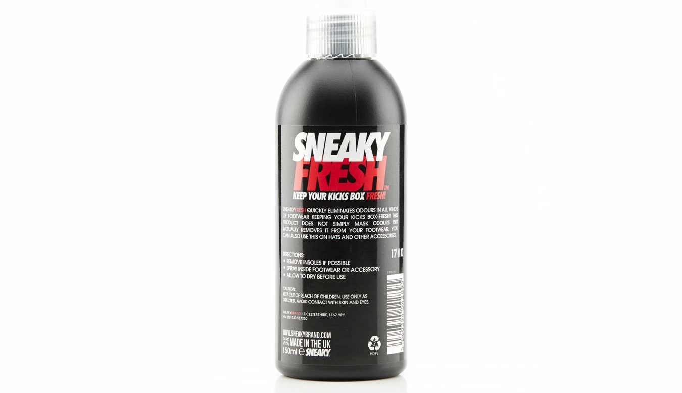 Sneaky Fresh shoe freshener and deodorant eliminates odours from shoes, trainers and hats. The specially formulated solution acts fast to remove bacteria and not just masked them with pretty smells.