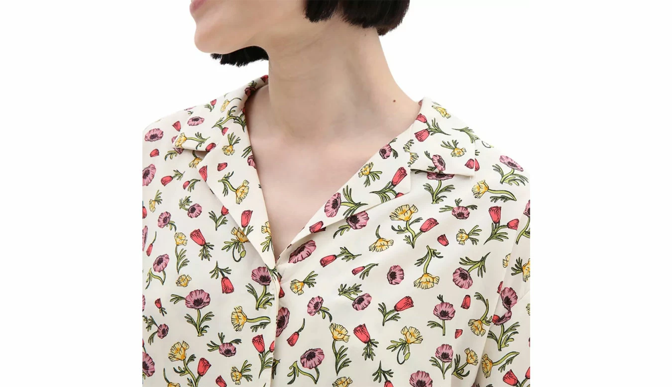 Featuring a vintage-inspired allover floral print, the Wyld Printed Top is a 100% viscose woven shirt with short sleeves and a button front placket. The notched collar and back yoke details elevate this timeless style.