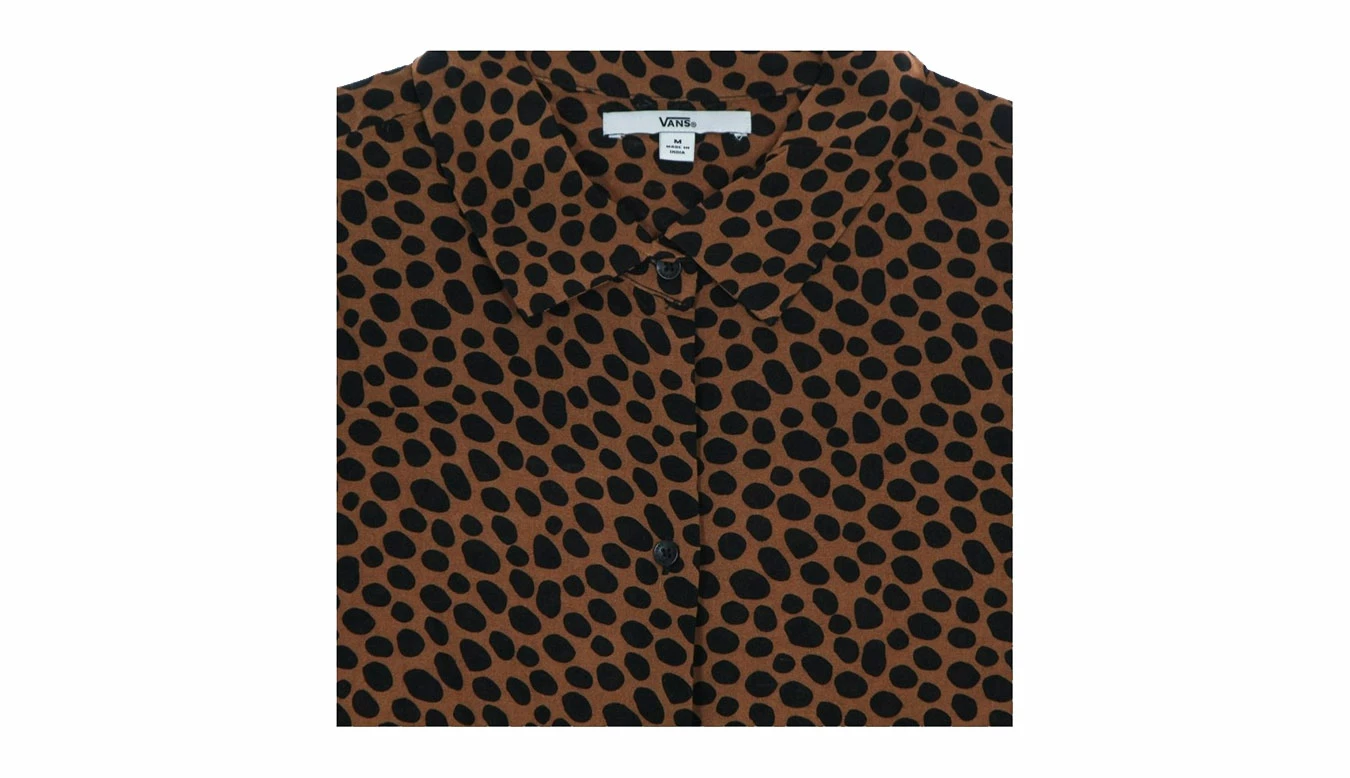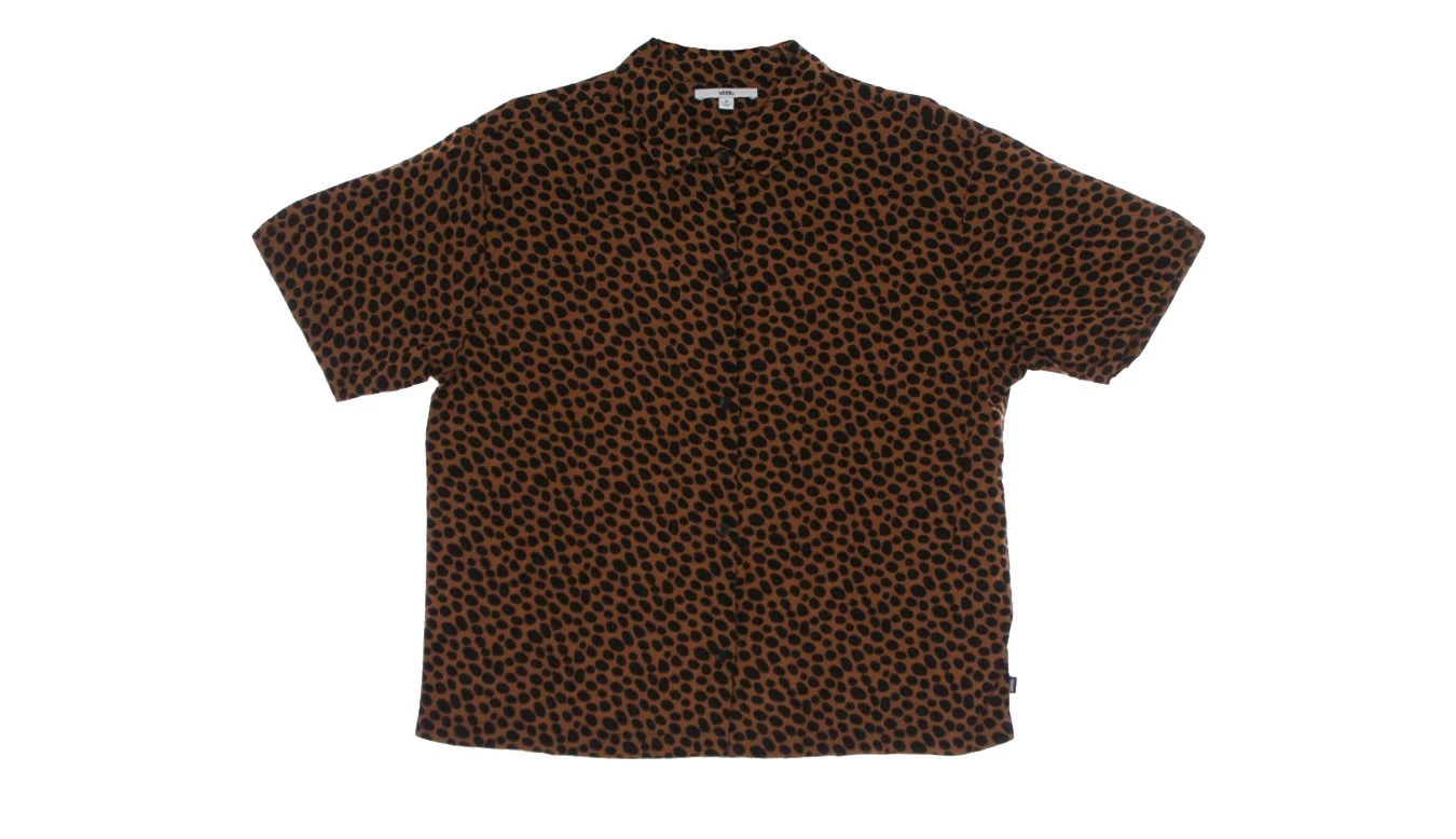 Featuring an allover cheetah print, the Wild Woven Buttondown Shirt is made with 100% viscose and easily adds a bold, graphic aesthetic to any look. This short sleeve woven top also includes back yoking, sleeve vent details, and a relaxed fit.