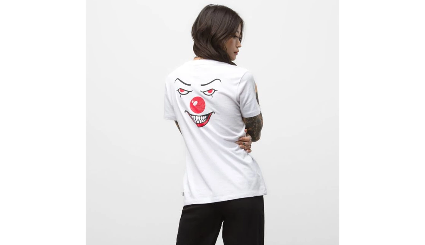 Featuring a single red balloon at left chest, the Vans x It T-Shirt will lure you in with the enticing image of a childhood relic . . . but don’t get too close. Pennywise is waiting as soon as you turn your back.